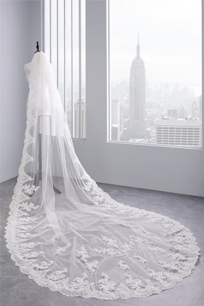 2018 New High Quality Long White Ivory Wedding Veil Appliques Lace Beaded Bridal Veils Bride Wedding Accessories For Wedding Dresses QC1210