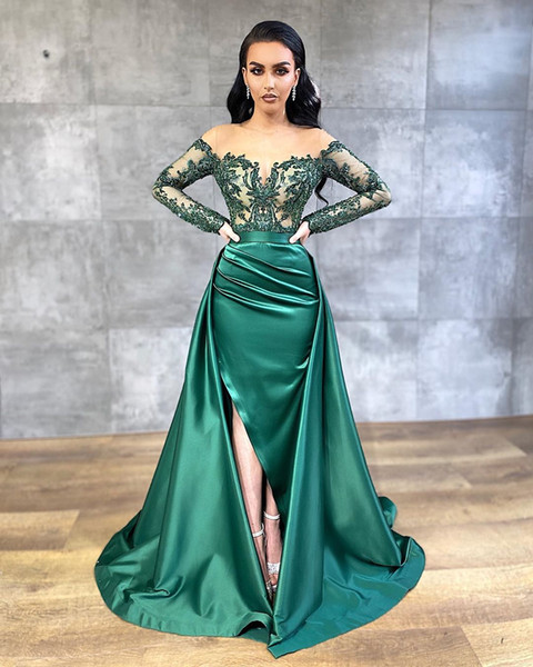2020 Arabic Aso Ebi Hunter Green Sexy Evening Dresses Lace Beaded Prom Dresses Mermaid Formal Party Second Reception Gowns ZJ228