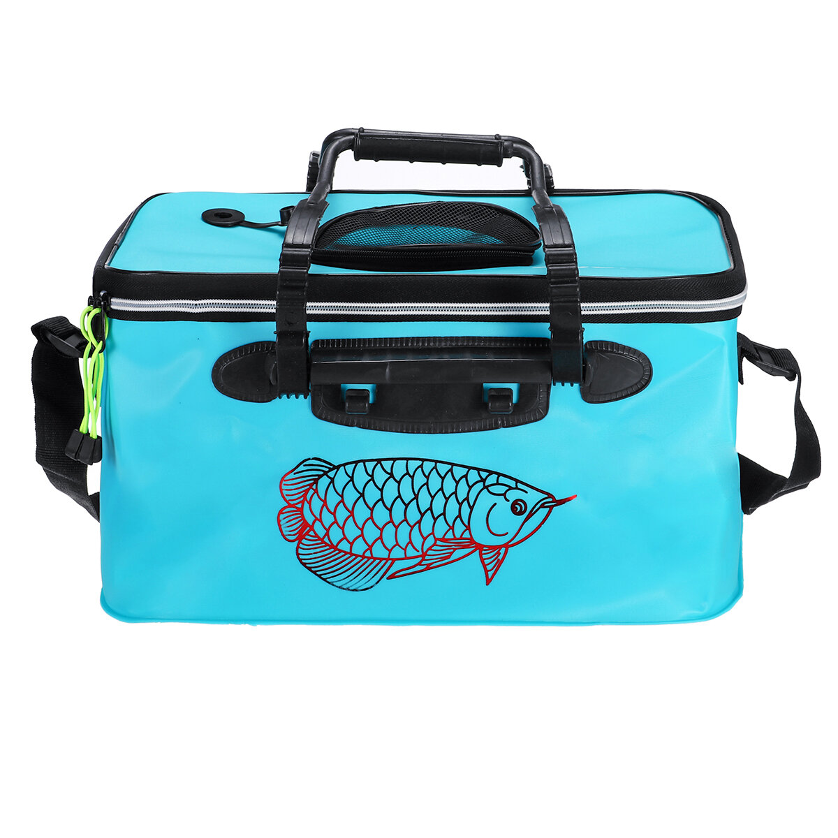 Description:- A portable collapsible fishing bucket bait bucket, with waterproof and durable material.- Suitable for fishing and cleaning car.- Storing water for camping, hiking, also for live bait, multifunctional tools. Side pocket for oxygen pump,which will make your fishes Breathing,and net lid makes more convenience when you putting the fishes in and out.- Easy to clean, when you use the collapsible fishing bucket bait bucket in the wild, just clean it with water.- Adjustable strap is suitable for different people,more stable than the round collapsible fishing bucket.- A great gift for your husband or someone who likes it.- Give some warm water, It will make him recover quicker.Specification:Material: EVAColor: Orange, Blue, Light BlueSize: 40*25*21cm /15.7*9.8*8.3inchCapacity: 23LNote:1. Please allow 0.5-1cm differences due to manual measurement.2. Due to the light and screen difference, the items color may be slightly different from the pictures.Package Included:1 X Collapsible fishing bucket (Not include oxygen pump)