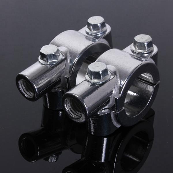1Pair Motorcycle Handlebar Thread Mirror Mount Holder Clamp AdaptorDescription:100%BrandNewFor10mmMirrors(8mmisalsoavailable.)ClamponhandlebarFitment-Tofit 23mm barsFeatures:1.Helpyoutofixedyourmotorcyclehandlebarmirror.2.Fitsallin10mmstudmountmirrors,andeasytoinstall.Specification:Material:AluminiumColor:ChromeQuantity:2pcsPackageIncluded:2pcsx 8mm or 10mmmotorcyclemirrorholder