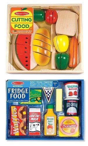 3 Item Bundle: Melissa & Doug Wooden Food Slicing + Fridge Food Set MD487/4076 + Coloring Activity BookFeatures 31 total pieces and comes in a wooden crate ( Food Slicing)