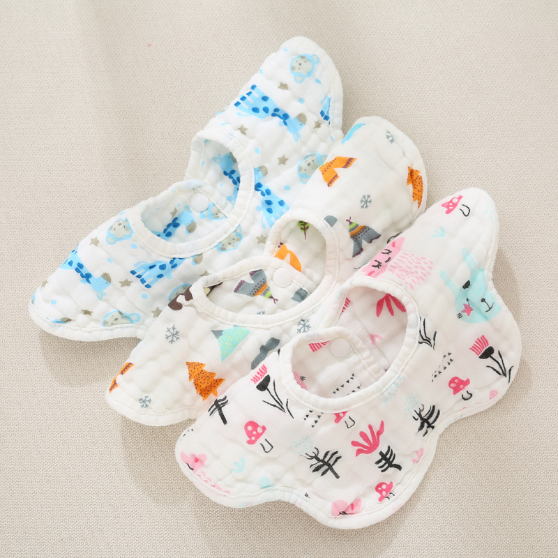 3-pack Cartoon Print Rotatable Cotton Bibs
