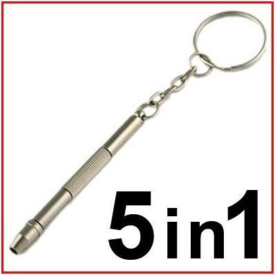 Compact miniature precision keyring screwdriver;Reversible flat and philips screwdriver heads;Dual hexagonal head for unscrewing nuts;Essential accessory for any glasses wearer;package:2 sets5-in-1 MINIATURE PRECISION REPAIR SCREWDRIVER for Optical/Glasses/Eyeglass Frames/Sunglasses/Jewellery/Watches
