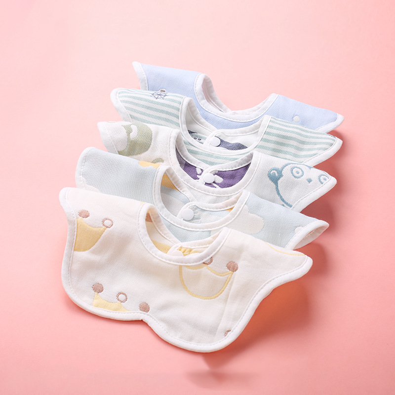 5-piece Cartoon Print Cotton Lovely Rotatable Waterproof Baby Bibs