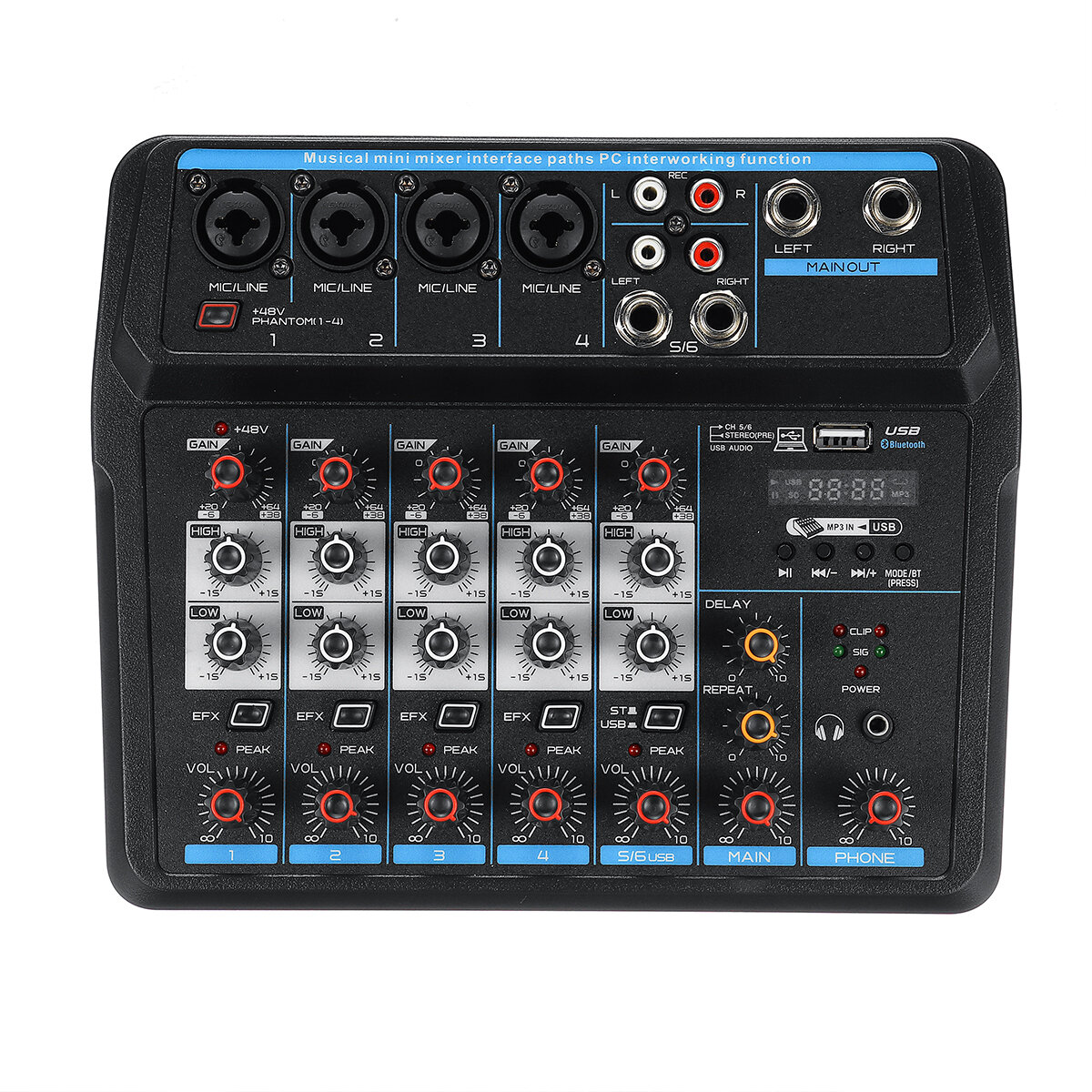 6 Channel bluetooth Audio Mixer Contrl DJ Mic with LED Digital Display Music Stream US Plug