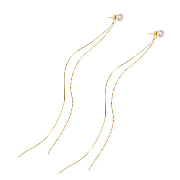 Luxury 925 Sterling Silver 18K Gold Platinum Long Ear Line Natural Pearl Drop Earrings Gift for Women for Girls