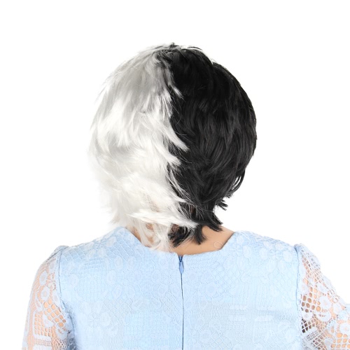 Adults Kids Black and White Short Wig Full Head Synthetic Wigs for Halloween Cosplay Costume Party