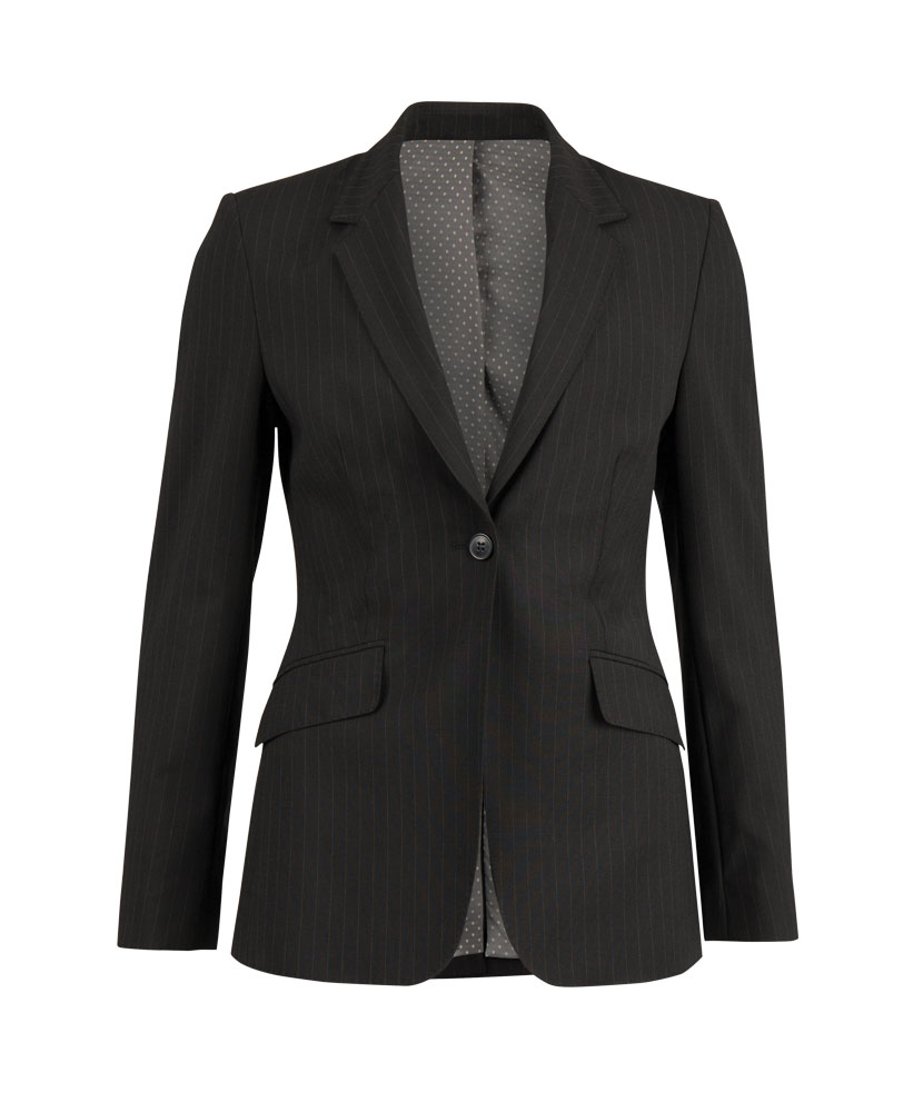 Collar and rever with peaked lapelOne button fasteningTwo jetted pocketsBack vent40° washSizes 8 – 26Cadenza composition: 54% polyester/44% wool/2% Lycra®