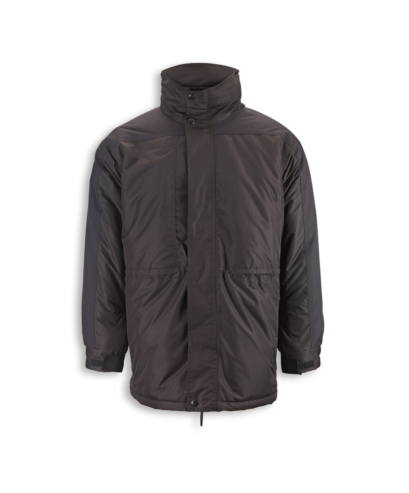 Stow-away hoodChest pocket and two hip pocketsStorm flap with stud and hook and loop fasteningUp to 40° wash100% polyurethane-coated nylon