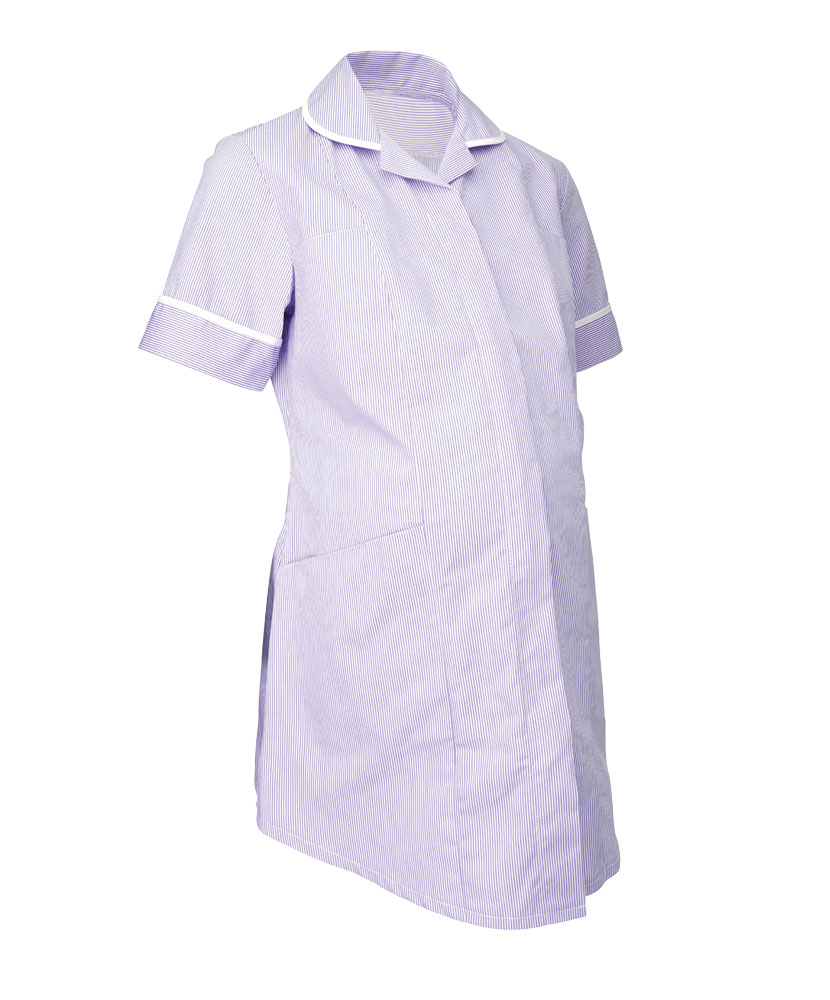Woven stripe fabric with concealed zip frontTwo hip and chest pocketsDouble action back and vents195gsm 67% polyester/33% cottonMachine washable and industrially launderableCentre back length: 75 – 81cm (increases with size)