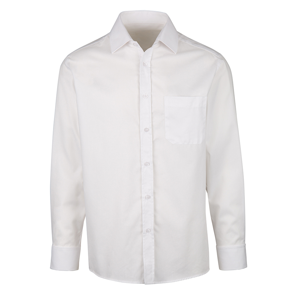 Tailored fit with shaped hem and double back yokeDouble cuffs and semi-cutaway collarChest pocketChoice of coloursUp to 50° wash120gsm 75% cotton/25% polyester