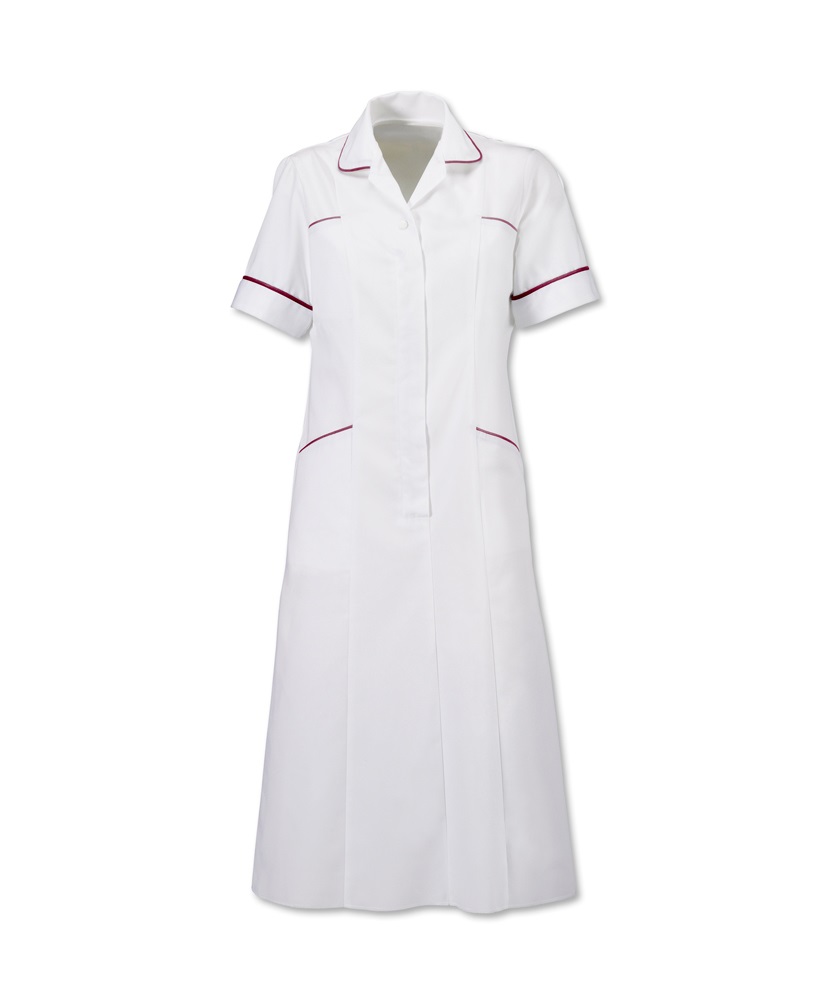 Concealed zip front step-in styleTwo hip and chest pocketsDouble action backMachine washable and industrially launderableLength: 117cm unhemmed210gsm 67% polyester/33% cotton