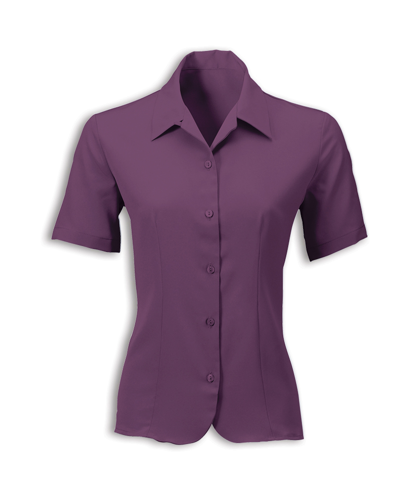 Open neck with option to fasten with button and loopFront button fasteningFeminine semi fitted styleEasycare Crepe de Chine fabric 130gsm 100% polyesterUp to 40 washSizes 6 – 26Back length: 61 – 68cm (increases with size)