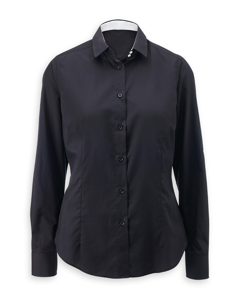 Long sleeves with button cuffsRoll up sleeve function with button fastening tabContrast inner collar cuffs and sleeve tabSemi fitted style165% polyester/35% cotton 122gsmUp to 40 degree washSizes XS – 3XL
