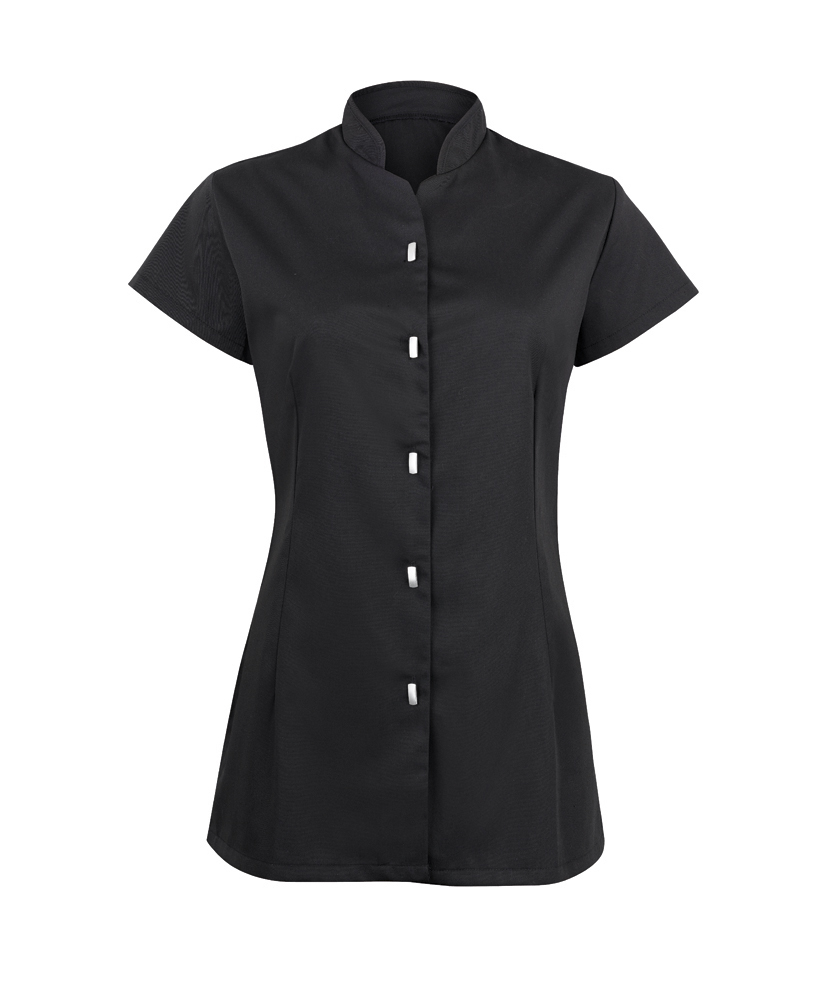 Silver button front fastening Side vents195gsm 65% polyester/35% cottonUp to 60 degree wash in line with infection control guidelinesSizes 76 – 136cm chestBack length 72 – 78cm (increases with size)