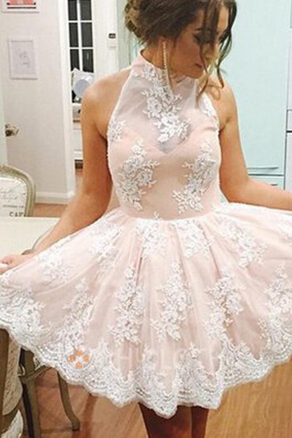 Aline High Neck Kneelength Short Black Prom Dresses 2020