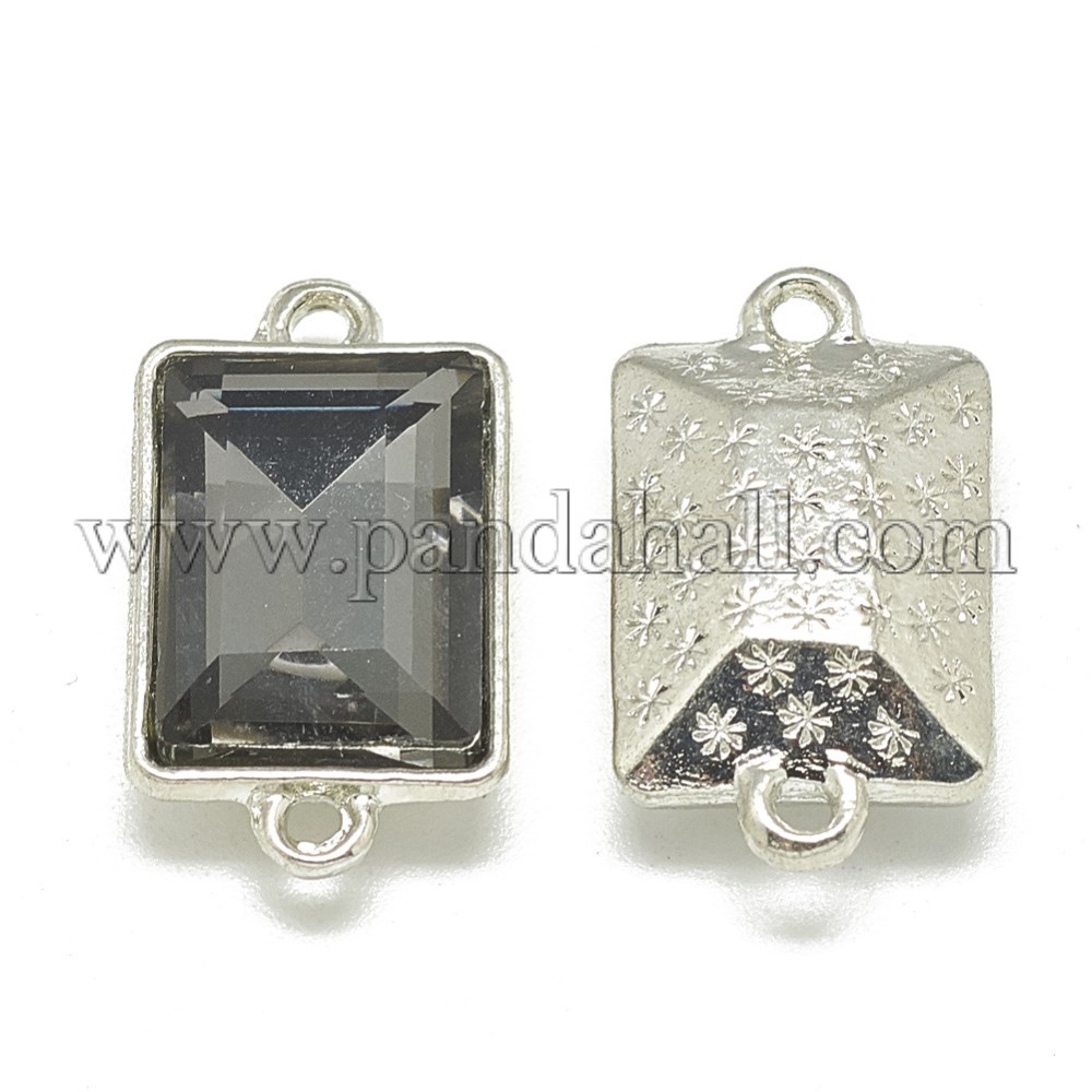 Alloy Glass Links/Connectors, Faceted, Rectangle, Platinum, Gray, 21x12x6mm, Hole: 1.5mm