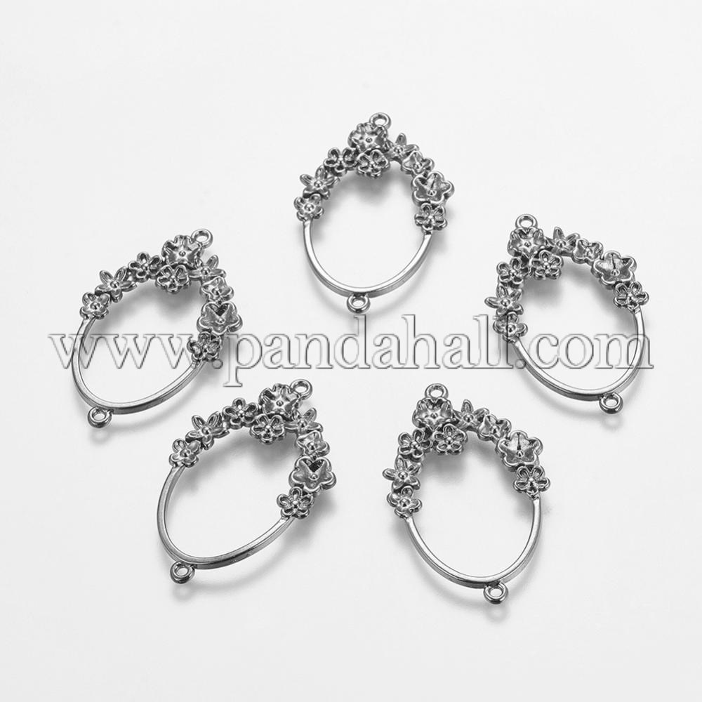 Alloy Links/Connectors, Oval, Accented with Flower, Gunmetal, Lead Free, Nickel Free and Cadmium Freeabout 42mm long, 26mm wide, 4mm thick, hole: 1.5mmPriced per 200pcsCreative design options in affordable alloy. These economical prices make them perfect for price-point creations. Great for neckalce and bracelets”s pendants or earrng components.