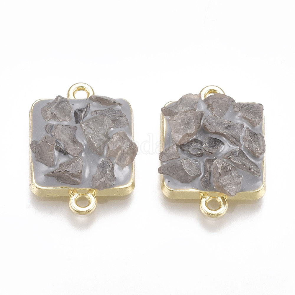 Alloy Links/Connectors, with Gemstone and Enamel, Square, Light Gold, GainsboroSize: about 20mm long, 14mm wide, 5~8mm thick, hole: 1.5mm.