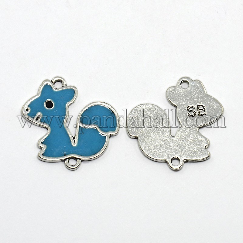 Antique Silver Tone Squirrel with Word SB Alloy Enamel Links, DeepSkyBlueSize: about 24mm wide, 24mm long, 1mm thick, hole: 1mm.