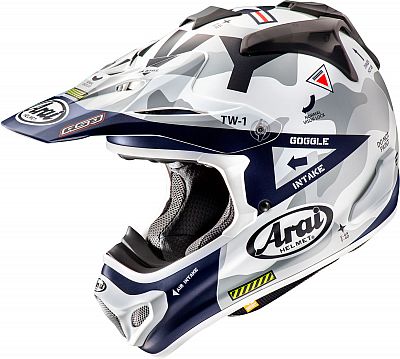The MX-V evolved from the much loved VX-3 model. Years of experience can be found in this ultimate off road helmet. The perfect choice for MX, Enduro and Off-road use. Just as found in every Arai helmet, the basic and simple organic shell shape is based on the R75 Shape concept. The absence of exaggerated edges or protrusions on the shell is not a lack of creativity, but a commitment to maintaining the integrity of the shell with real world impact performance. MX-V: Ventilation Easy to clean diffusers create a strong venture vacuum at the rear. Centre top vent for increased airflow. Under-peak air intake collects and directs cool air into the helmet. Inner chin vent shutter prevents debris coming into the helmet in dusty riding conditions. Goggle ventilation and lower side vents. Shell Construction: SCLC Super Complex Laminate Construction The latest aerospace fibres, with 30% more strength in extension & bending resistance than standard fiberglass comprises the majority of the SCLC shell. While considerably more expensive than most fiberglass (and in fact more than many Carbon Fibre materials), this âSuper Fibreâ provides incredible flexibility and strength, which maximizes shell integrity. A specially designed âmechanically expanded fibre mat,â sandwiched between the inner and outer layers of Arai´s proprietary Super Fibre Laminates, is used to reinforce and bond these two Super Fibre layers without adding significant weight to the helmet. Front Ventilation: Center top vent The new Top Vent provides 11% more airflow than the previous Vent. The new bigger switch makes opening and closing easier. The new Top Vent has three positions, closed, half open and fully open to adjust the airflow and prevent water intrusion when fully closed. Inner chin (bar) vent shutter Open and close the chin bar vents from the inside to prevent debris coming into the helmet in dusty riding conditions. Rear Ventilation: Removable three-piece rear exhaust Creates a tremendous amount of venturi vacuum at the rear. Can be easily removed (for cleaning) or replacement. Rear Ventilation: Side exhausts Produce low pressure behind the rear vent for better hot air extraction. Integrated in the shell for better aerodynamics, reduce wind noise and prevent buffeting at speed. Inside, a small foam dam helps to absorb and diminish excessive noise, without reducing ventilation performance. Interior: Dry-Cool® Liner Arai´s Dry-Cool® material transfers heat and moisture away from the rider quickly and efficiently. Interior: Replaceable Cheek pads/Ear cups Depending on the model, cheek pads, ear cups or the complete interior may be easily removed. All parts (replaceable or not) can be cleaned with lukewarm water and mild soap. Rinse well after cleaning and never dry in direct sunlight or near a heat source. Interior parts in different size thickness are available for a custom fit for every rider. Interior: Replaceable Interior Depending on the model, cheek pads, ear cups or the complete interior may be easily removed. All parts (replaceable or not) can be cleaned with lukewarm water and mild soap. Rinse well after cleaning and never dry in direct sunlight or near a heat source. Interior parts in different size thickness are available for a custom fit for every rider. Interior: Replaceable Chinstrap covers Depending on the model, cheek pads, ear cups or the complete interior may be easily removed. All parts (replaceable or not) can be cleaned with lukewarm water and mild soap. Rinse well after cleaning and never dry in direct sunlight or near a heat source. Interior parts in different size thickness are available for a custom fit for every rider. Interior: Replaceable Neckroll Depending on the model, cheek pads, ear cups or the complete interior may be easily removed. All parts (replaceable or not) can be cleaned with lukewarm water and mild soap. Rinse well after cleaning and never dry in direct sunlight or near a heat source. Interior parts in different size thickness are available for a custom fit for every rider. Interior: Facial Contour System (FCS) To offer an even better snug fit and enhancing the comfort to the lower jaw, the Facial Contour System (FCS) works with a foam spring support in the cheek pad that compresses and rebounds, providing the necessary support without excessive pressure. Interior: 5mm ââPeel Awayââ Ear cups/Cheek pads Giving even more ability to craft the perfect fit and comfort, the cheek pads now feature a 5 mm peel away layer for added room if needed. Comfort: Emergency Release System (ERS) Allows easier access to an injured rider. By pulling the orange tabs integrated in the pads, the cheek pads slide out. Making helmet removal easier for trained medical personnel and rescuers. Minimising the risk of additional injury. Comfort: Breath guard Works in conjunction with the dual-pivot® chin vent to better direct fresh air to the inside surface of the shield while at the same time directing hot breath down and away from the inside surface of the shield. Comfort: Dirt removal The elongated and rounded peak helps protect the rider from mud or other objects. The flow-through vent ducts and removable rear vent cowls also allow you to remove dirt easily. Approval: ECE 22-05 The most common helmet certification internationally, required by over 50 countries worldwide. Five times inspected Each Arai helmet goes through five separate quality-control departÂments: after the shell is made, after painting and graphic completion, after assembly and two in-process inspections. Washable interior The premium quality interior of any Arai helmet can be easily cleaned, in place, with mild soap and lukewarm water. Handmade It can take up to five years for our experts to earn the right to create an Arai shell. Each shell can take up to 27 steps and to build one Arai helmet will take about 18 man-hours. All-day comfort All-day comfort with the Arai interior fit and shape together with the finest liner materia