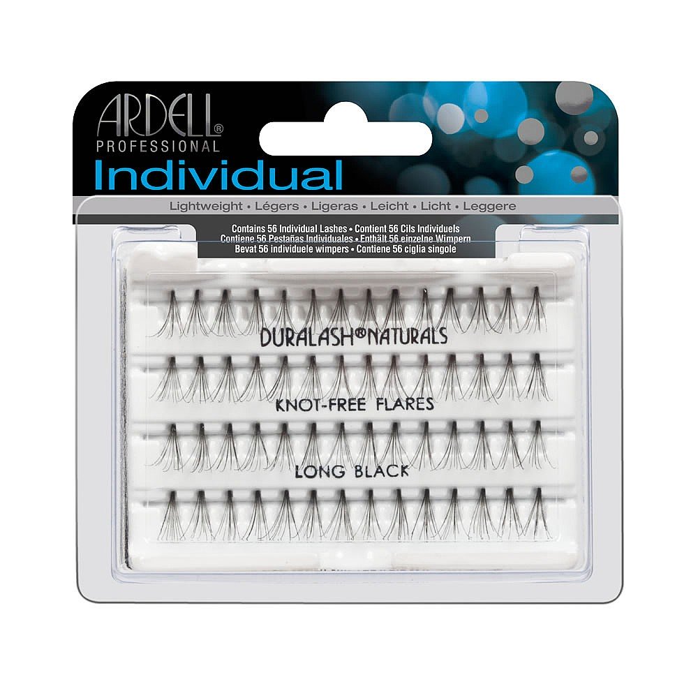 Offer your clients Ardell individual knotfree black long lashes for a more natural look. These lashes are permanently curled, waterproof, easy to apply and comfortable to wear. There is no knot at the base of the lash where it attaches to the other individual lashes to create the flare or cluster look naturally. They feel so natural your clients will forget they re not their own. They can be worn for up to 6 weeks at a time. One package contains 56 lashes. Size long, also available in short and medium.