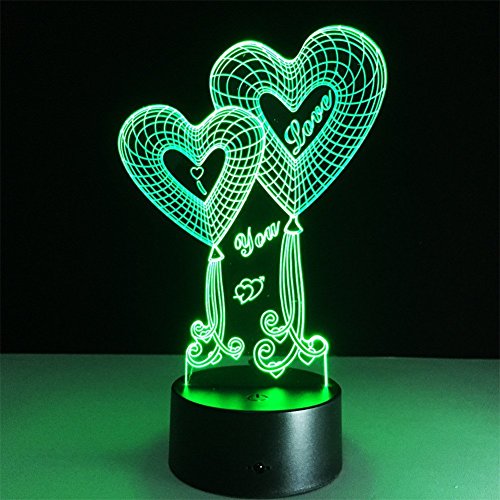 ATD Double Heart Balloon I LOVE YOU 3D Optical Illusion Touch Botton 7 Color Changing LED Night Light Desk Lamp,Romantic Gift for Lover,Wife,Boyfriend or Girlfriend