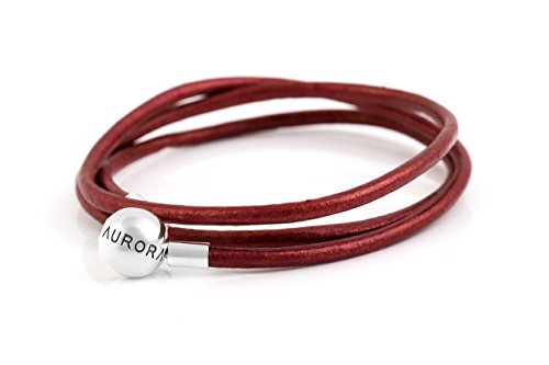 Red Genuine Triple Leather Aurora Bracelet with round clasp and optional silver stopper. Can also be used as a necklace instead. Bracelet does not come with charms, charms are sold separately. Please choose the correct size. If you normally wear 17 or 18 cm bracelet, then choose 53 cm triple bracelet. If you normally wear 19 or 20 cm bracelet, then choose 57 cm triple bracelet. If you are between sizes ask yourself how you like to wear your bracelet. If you wear it tightly choose the smaller size and if you like to wear it loosely take the next size up. We recommend that the leather bracelets are worn with a maximum of 7-9 charms regardless of the bracelet length. Due to the natural properties of leather, it can expand or contract according to the climate, moisture, heat and/or how it is stored. Silver Stopper & Spacer in one with clear silicone centre – simple yet stunning! A great little helper when you need to keep your charms in place or space them out. A must as a last piece to protect your charms from running away when opening your Aurora bracelet. Size of the stopper: 8 mm (diameter) x 3 mm (width). Also possible to purchase separately. All Aurora items are fully compatible with similar core size charms / bracelets like Pandora, Chamilia, Ohm, Troll beads, etc. For specials, free shipping options, free gifts and more visit http://auroracharm.com directly!