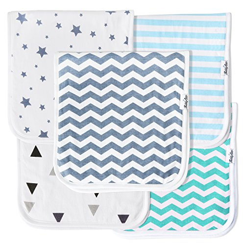 Baby Burp Cloths for Boys 5 Pack, Large 21″x10″, Triple Layer, 100% Organic Cotton, Thick, Soft and Absorbent Towels, Burping Rags for Newborns, Baby Shower Gift by KiddyStar