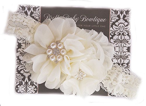Baby Christening Baptism Headband – Handcrafted in the USA (Regular 3m-Toddler, Cream Lace Pearls)