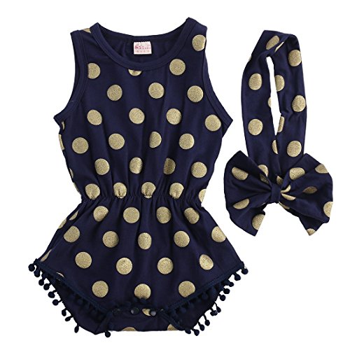 Baby Girl Clothes Gold Dots Bodysuit Romper Jumpsuit One-pieces Outfits Set (18-24 Months, Navy Blue)