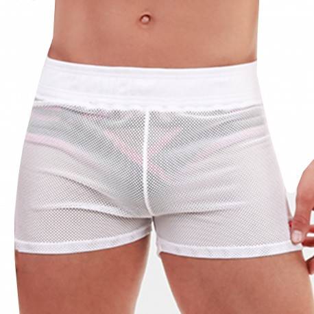 Very sexy short made from see-through net mesh. Unlined for a total transparency. Wide elastic waistband. Barcode label on the left thigh.