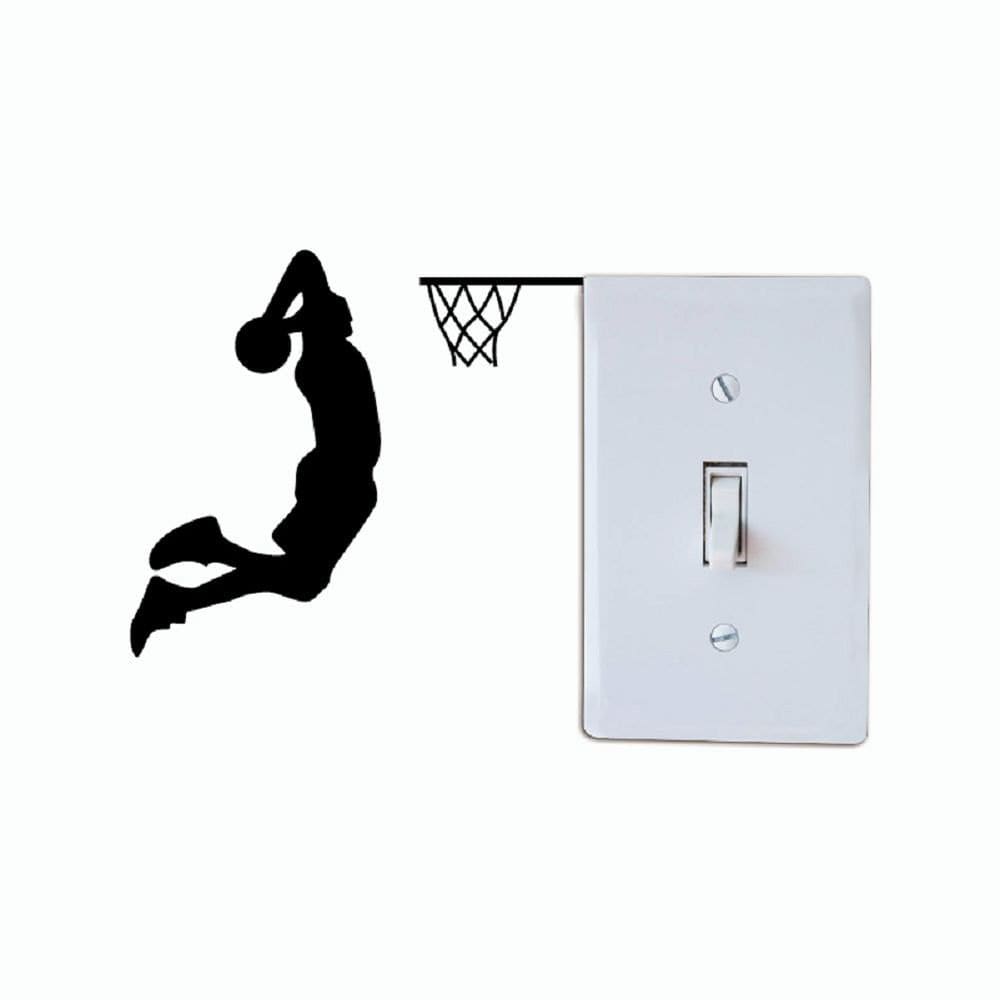 Basketball Player Dunk Silhouette Light Switch Sticker Cartoon Sport Vinyl Wall Decor