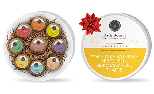 Bath Bombs Variety Gift Set of 9 XL Assorted Fizzies (120g each) – Individually Wrapped – Natural, Organic & Vegan w/ Essential Oils – Gift Idea for Women, Kids, Birthday, Teens