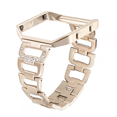 bayite Stainless Steel Bands with Frame for Fitbit Blaze, Rhinestone Bling Replacement Accessory Straps for Women Champagne Gold