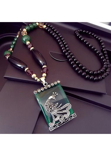 Beads Decorated Peacock Pattern Pendant Sweater Necklace