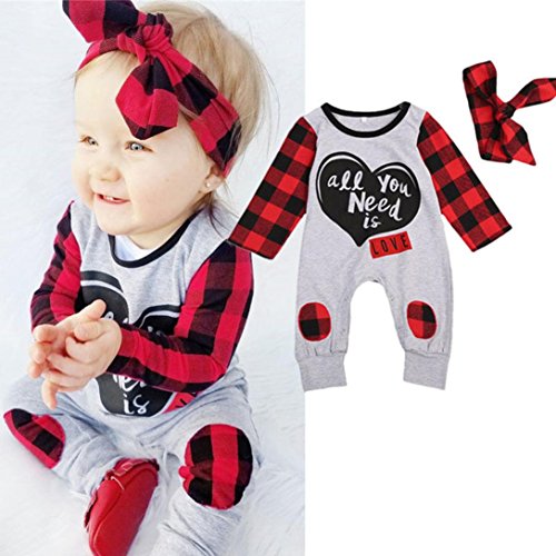 BeautyVan Hot Sale ! 2Pcs Set Baby Outfits Set,Newborn Baby Boys Girls Letter Print Plaid Ankle-Length Jumpsuit Outfits (6M, Gray)