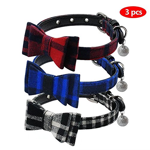 Beirui Cute 3 pcs/set Dog Collar Charms Adorable Studded Bowtie – British Style Plaid Adjustable Small Dog Collar with Bell Charmfor Puppy and Kitten,1/2″ * 8.5-11.5″(22-30cm)