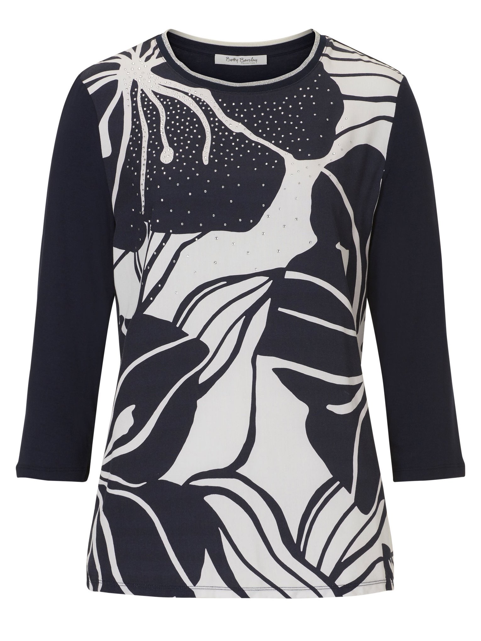 Betty Barclay Navy/Cream Front Print and Diamante Jersey Top