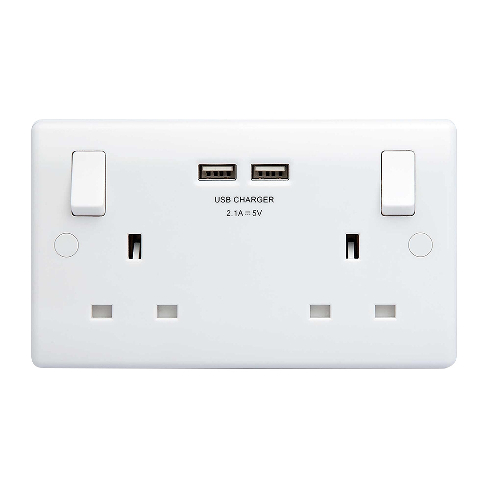 This 2 Gang Switched Socket with 2 USB charging ports is Ideal for charging iPad, iPhone, tablets, mobiles, cameras and more. It features a stylish, modern profile with covers to conceal fixing screws. The USB ports are 2.1A 5V USB 2.0 Type A (either one or split across two ports).It will charge Apple devices and other items normally charged from USB. There are colour coded terminals with backed out captive screws for easy installation, with twin earth fitted as standard. There’s also a USB charger stand-by power mode when not in use.*This product has a 30-year product guarantee against faulty workmanship and materials.What’s in the Box?BG 322U-AL 13A 2 Gang Switched Socket + USB