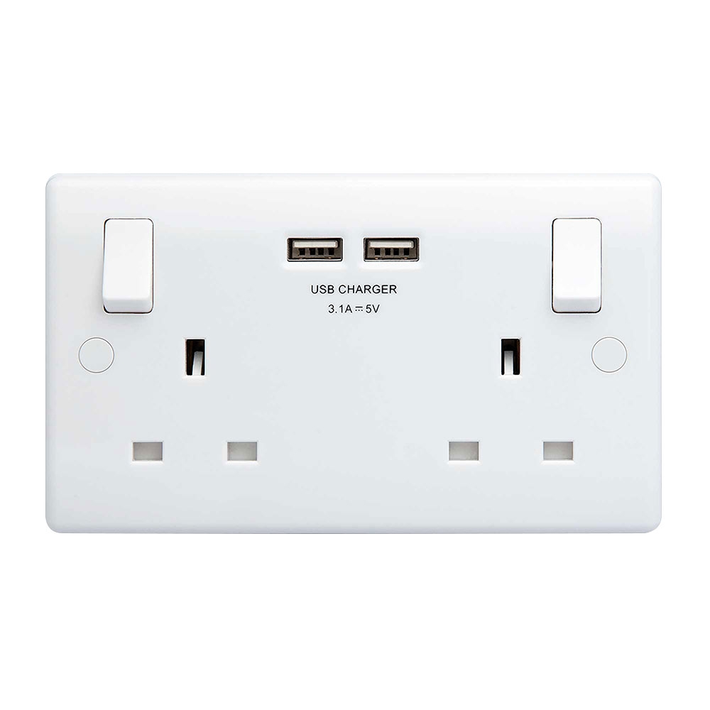 This 2 Gang Switched Socket with 2 USB charging ports is Ideal for charging iPad, iPhone, tablets, mobiles, cameras and so much more.It features a stylish, modern profile with covers to conceal fixing screws. The USB ports are 3.1A 5V USB 2.0 Type A (either one or split across two ports).It will charge Apple devices and other items normally charged from USB. There are colour coded terminals with backed out captive screws for easy installation, with twin earth fitted as standard.There’s also a USB charger stand-by power mode when not in use.*This product has a 30-year product guarantee against faulty workmanship and materials.What’s in the Box?BG 822U3 13A 2 Gang Switched Socket + USB