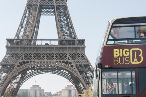Half covered Open-top bus to enjoy Paris even if it is raining