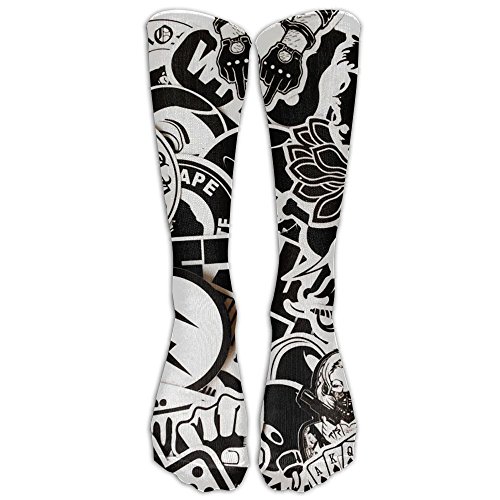 Black And White Stickers Painting Middle Finger Knee High Graduated Compression Socks For Women And Men – Best Medical, Nursing, Travel & Flight Socks