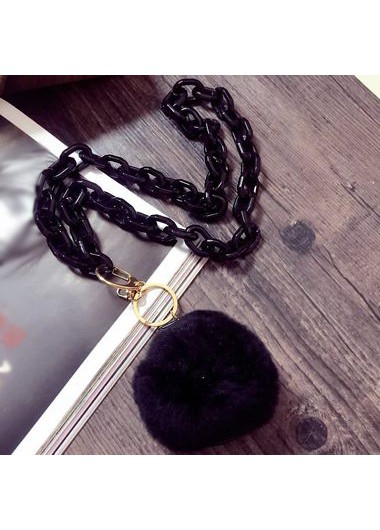 Black Furry Ball Decorated Mirror Pendant Sweater Necklace