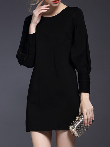 Black Shift Paneled Balloon Sleeve Crew Neck Mini Dress