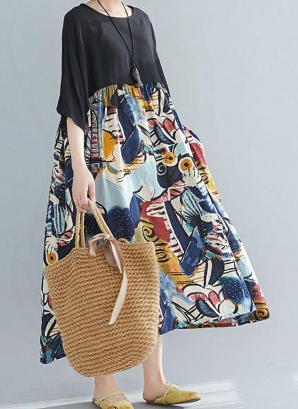 Black Size Tunic Color Block Round Clothes For Plus Size