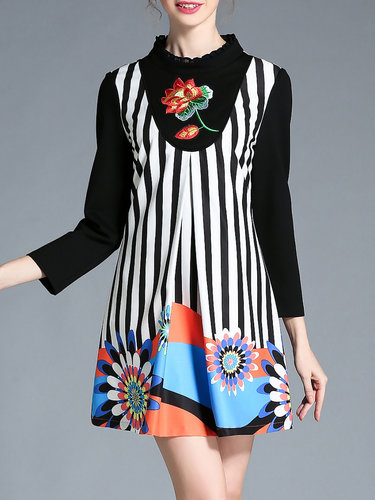 Black Stripes Appliqued Elegant Stretchy Mini Dress