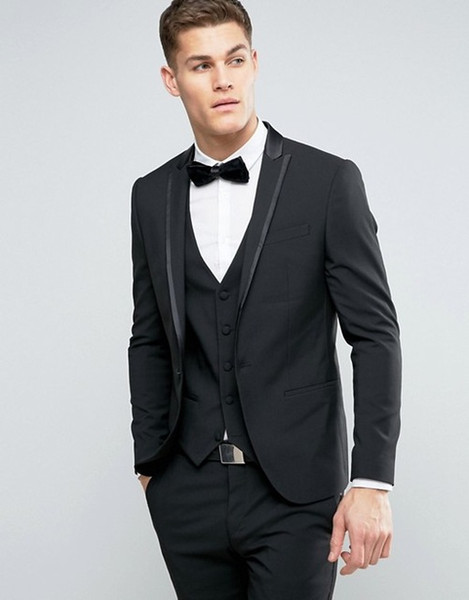 Black Wedding Tuxedos Slim Fit Suits For Men Groomsmen Suit Three Pieces Cheap Prom Formal Suits (Jacket+Pants+Vest+Tie) 209
