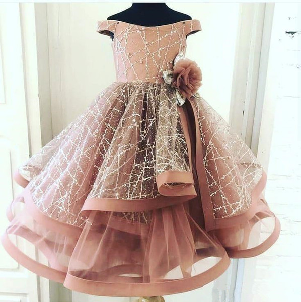 Blush Pink 2020 Flower Girl Dresses Ball Gown Little Girl Birthday Party Dresses Vintage Off Shoulder Communion Pageant Dresses