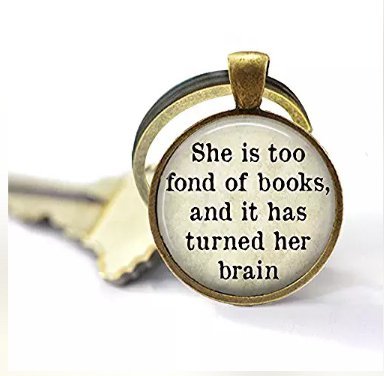Book Quote Key Chain – Louisa May Alcott – She is Too Fond of Books and it Has Turned Her Brain – Literary Keychain – Literature Quote – Gift for Book Lover